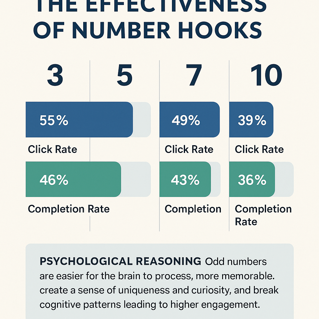 Power-Number-Psychology: Ungerade Zahlen wirken authentischer als gerade. „5 Tipps“ fühlt sich echter an als „6 Tipps“ oder „4 Tipps“. Die Zahl 3 nutzt die Dreierregel und ist besonders merkfähig.