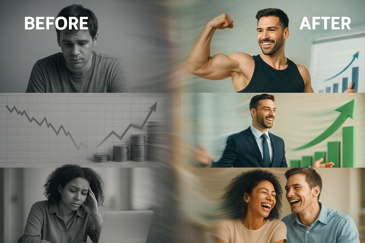Emotionale Komponenten: Verbinden Sie Transformation mit Emotionen. „Von verzweifelt zu selbstbewusst“, „Von pleite zu finanziell frei“, „Von überfordert zu organisiert“. Emotionale Transformationen sind stärker als nur faktische.