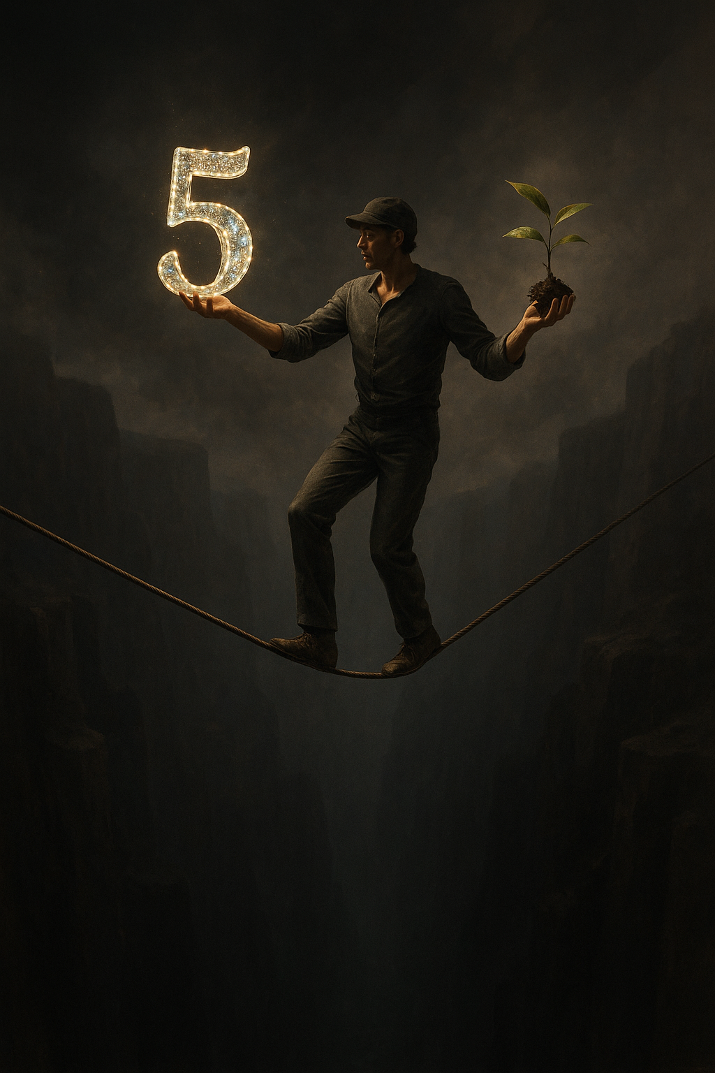 Seiltänzer balanciert zwischen gekauften Followern und echtem Wachstum