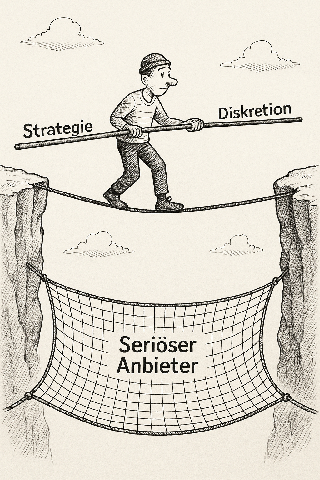 Seiltänzer balanciert zwischen Strategie und Diskretion