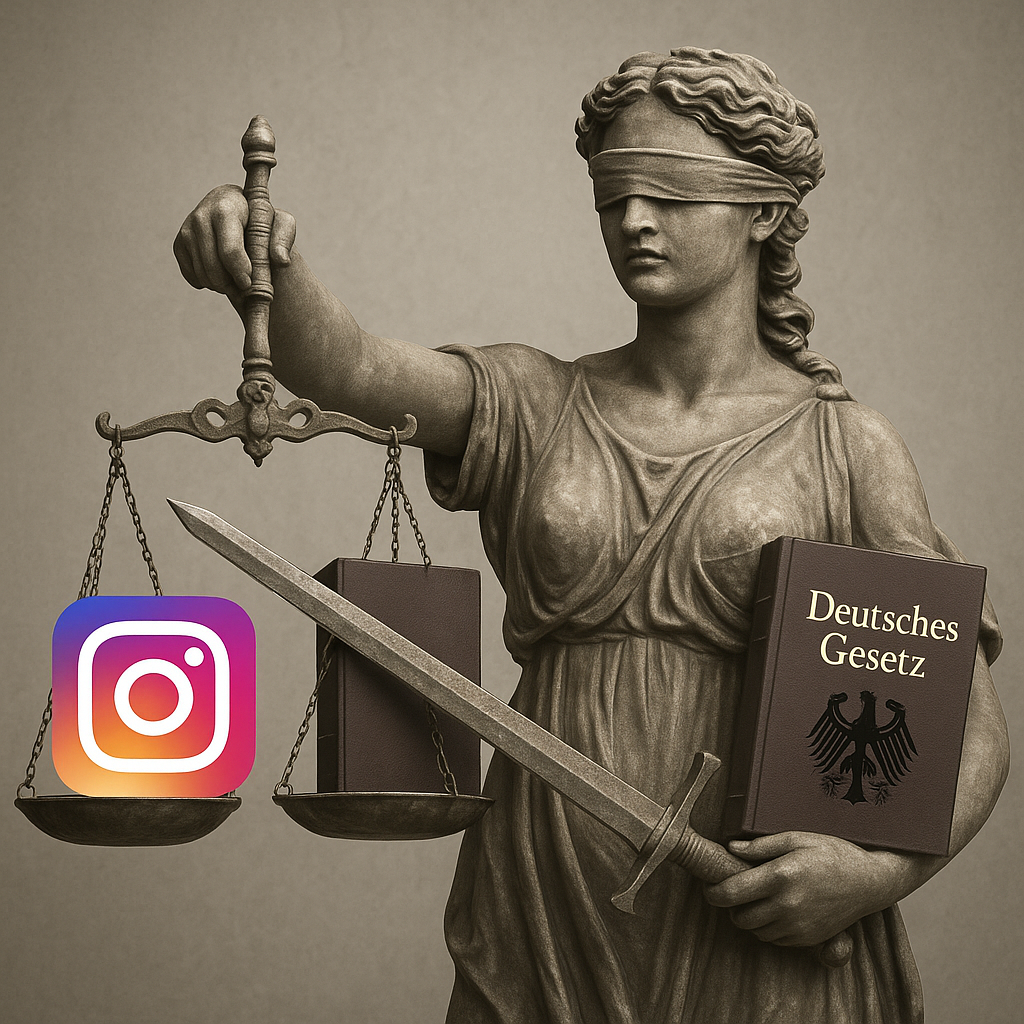 Justitia wägt Instagram-Aktivitäten gegen deutsche Gesetze ab