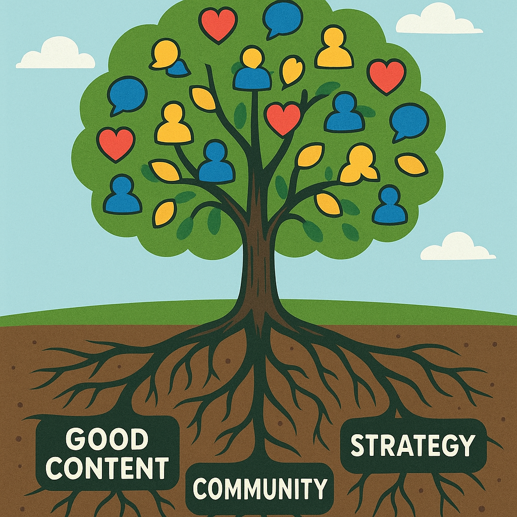 Baum mit starken Wurzeln trägt Früchte in Form echter Social Media Erfolge