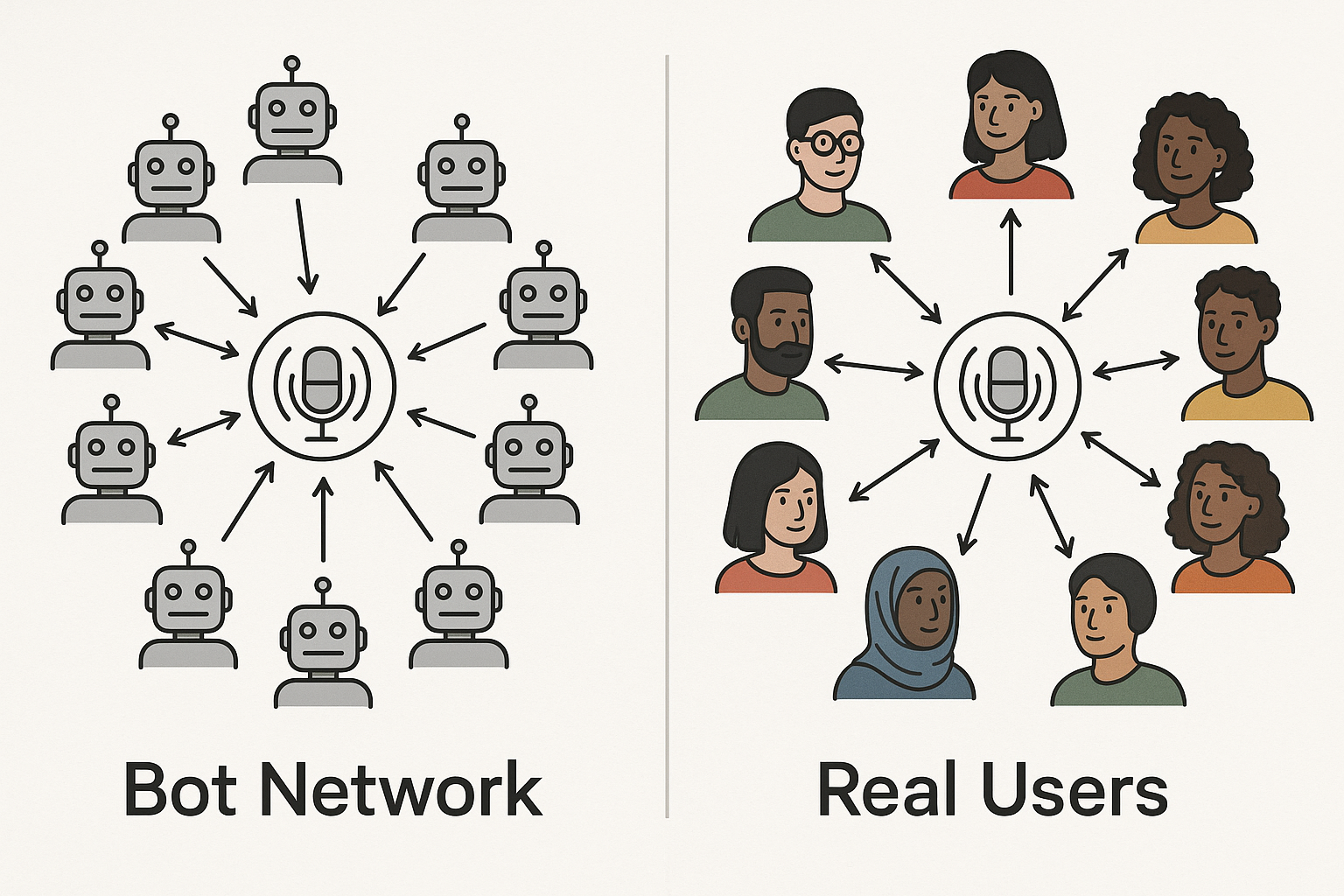 Gekaufte Hörer sind keine echten Fans. Sie werden nicht kommentieren, Ihren Podcast nicht weiterempfehlen und keine Produkte kaufen. Ihr Engagement ist passiv. Wenn das Verhältnis von Plays zu echten Interaktionen (Follower, Bewertungen) zu stark auseinanderklafft, kann dies für aufmerksame Nutzer und potenzielle Partner ein Warnsignal sein.