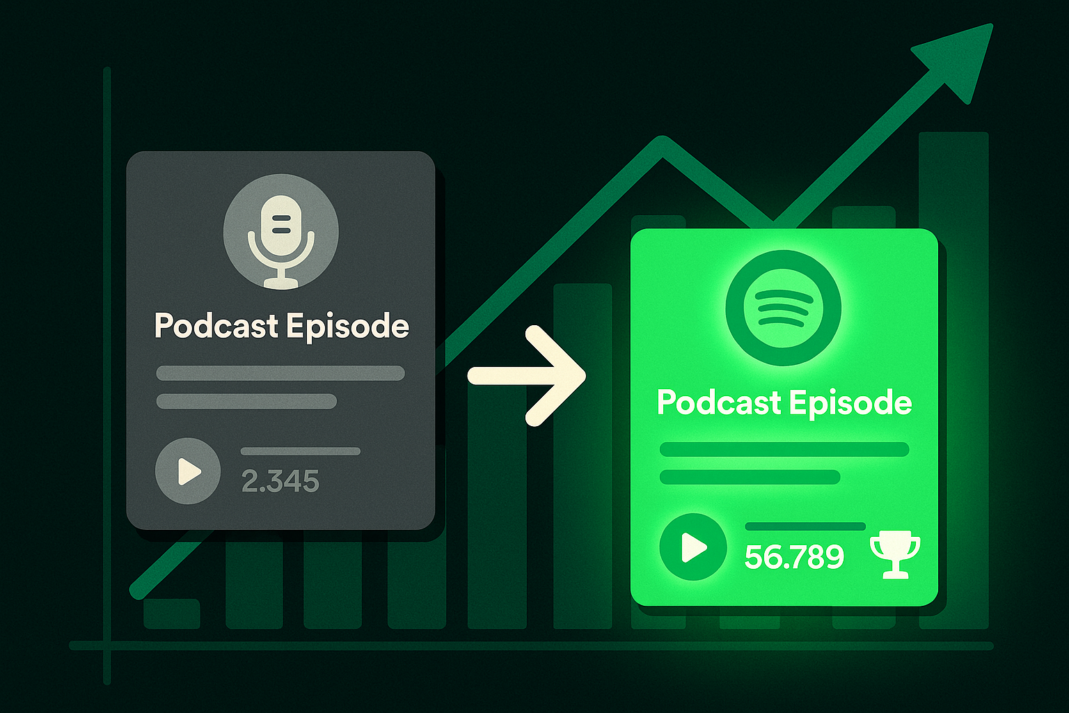 Ein neuer True-Crime-Podcast kaufte für seine ersten drei Episoden jeweils 10.000 Plays über einen Zeitraum von 10 Tagen. Durch die verbesserte Sichtbarkeit wurde er in die „Neue & Beachtenswerte“-Kategorie von Spotify aufgenommen. Dies führte zu einem organischen Hörerzuwachs von 150% innerhalb der nächsten vier Wochen und zu den ersten Werbeanfragen.