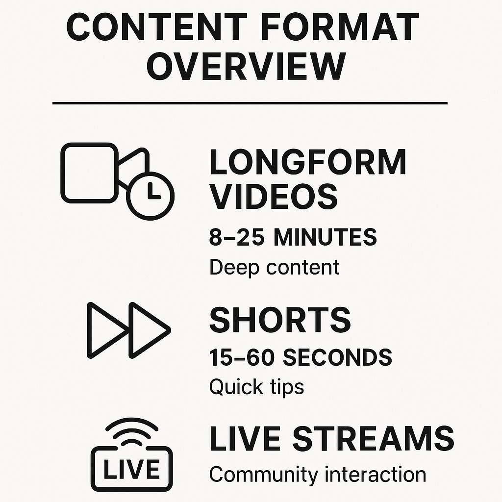 2025 erfordert einen strategischen Mix verschiedener Content-Formate, um den YouTube-Algorithmus optimal zu nutzen und verschiedene Zuschauertypen zu erreichen.