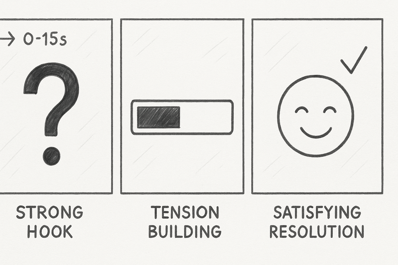 Video-Storyboard mit Hook, Spannungsaufbau und Auflösung