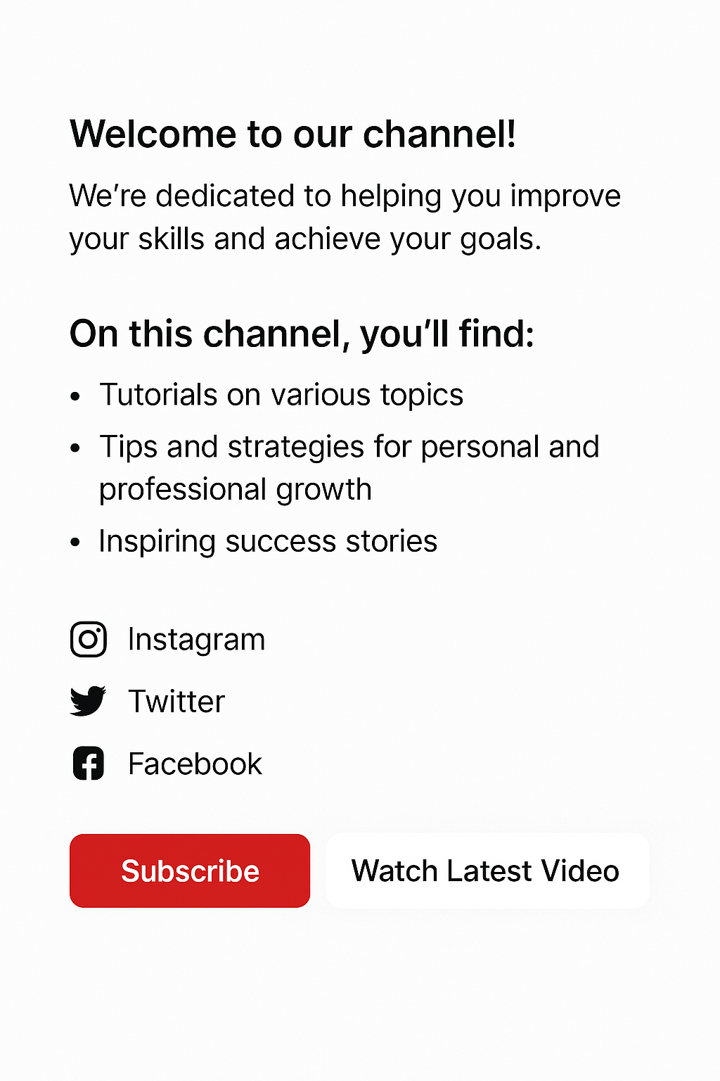 Ihre Kanalbeschreibung ist entscheidend für SEO und Conversion. Sie sollte sofort klarstellen, warum jemand abonnieren sollte.