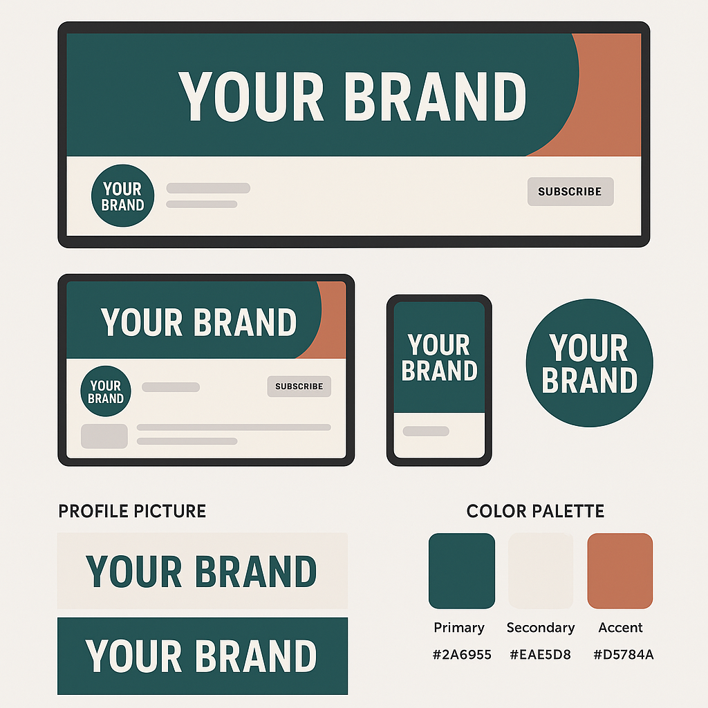 Banner-Design: Ihr Kanalbanner sollte auf Desktop, Tablet und Mobile optimal dargestellt werden. Nutzen Sie die „sichere Zone“ (1546 x 423 Pixel) für wichtige Elemente. Integrieren Sie Ihren Upload-Rhythmus („Neue Videos jeden Dienstag“) und Links zu anderen Plattformen.