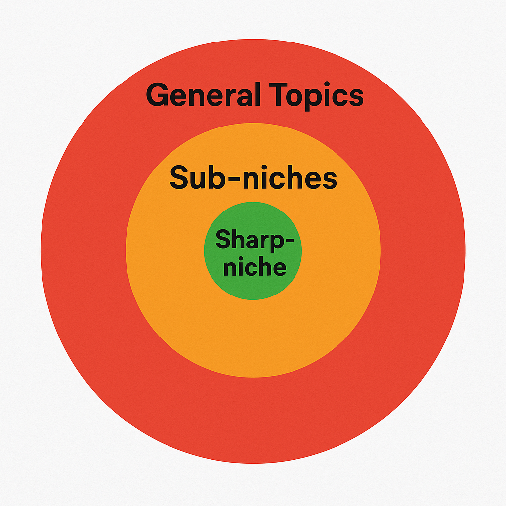 Zielscheibe zeigt Nischenfindung: Von allgemeinen Themen zur spitzen Positionierung