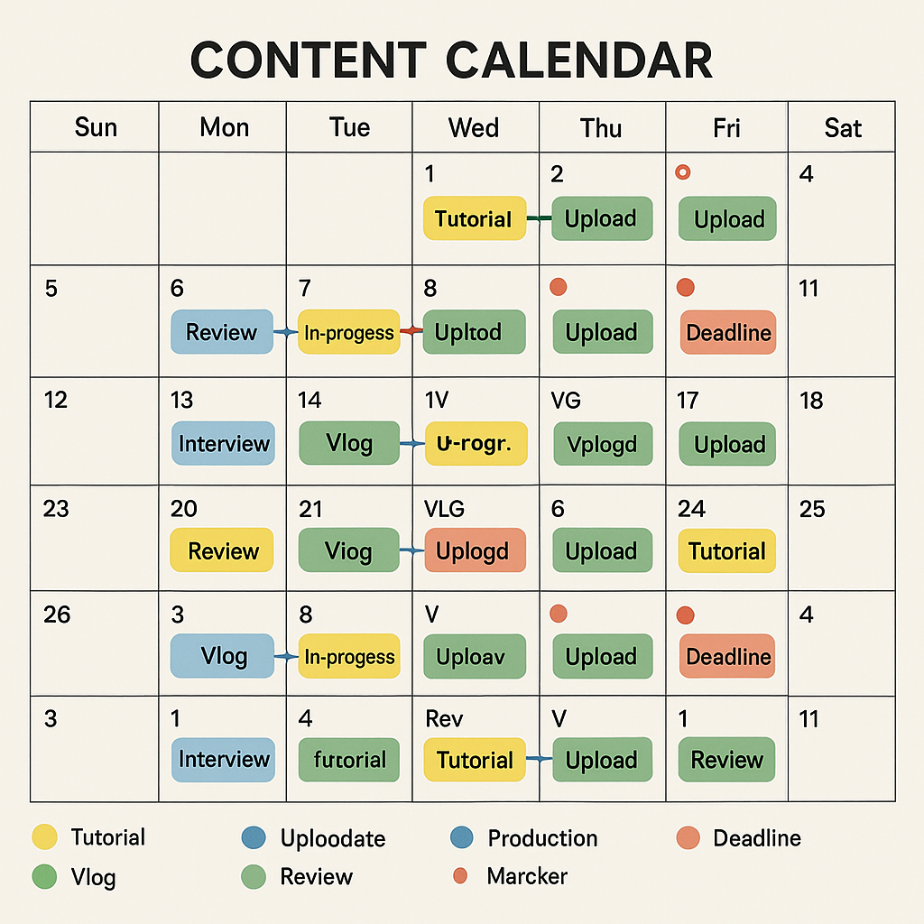 Konsistenz ist entscheidend für YouTube-Erfolg. Ein strukturierter Redaktionsplan hilft Ihnen dabei, regelmäßig zu veröffentlichen und gleichzeitig die Content-Qualität zu erhalten.