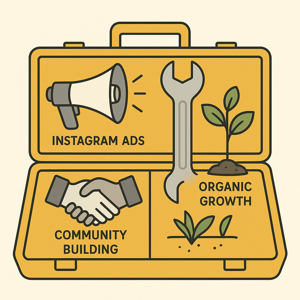 Werkzeugkasten mit Tools für organisches Instagram-Wachstum