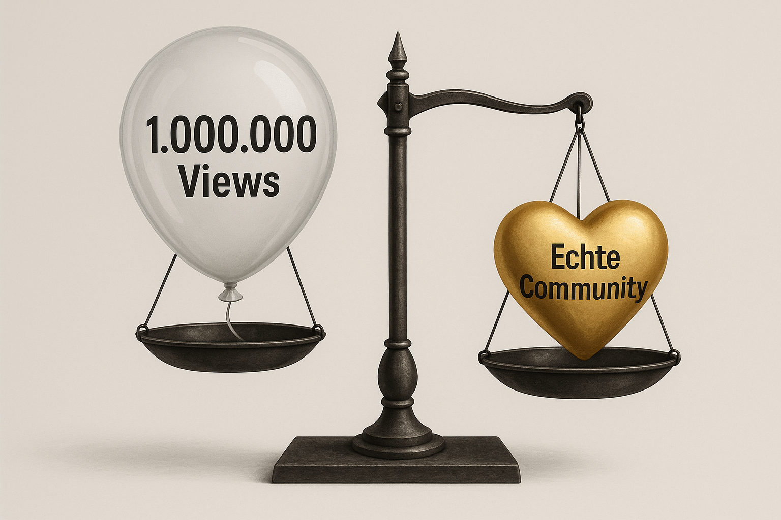 Waage zeigt wahren Wert: echte Community wiegt schwerer als leere View-Zahlen