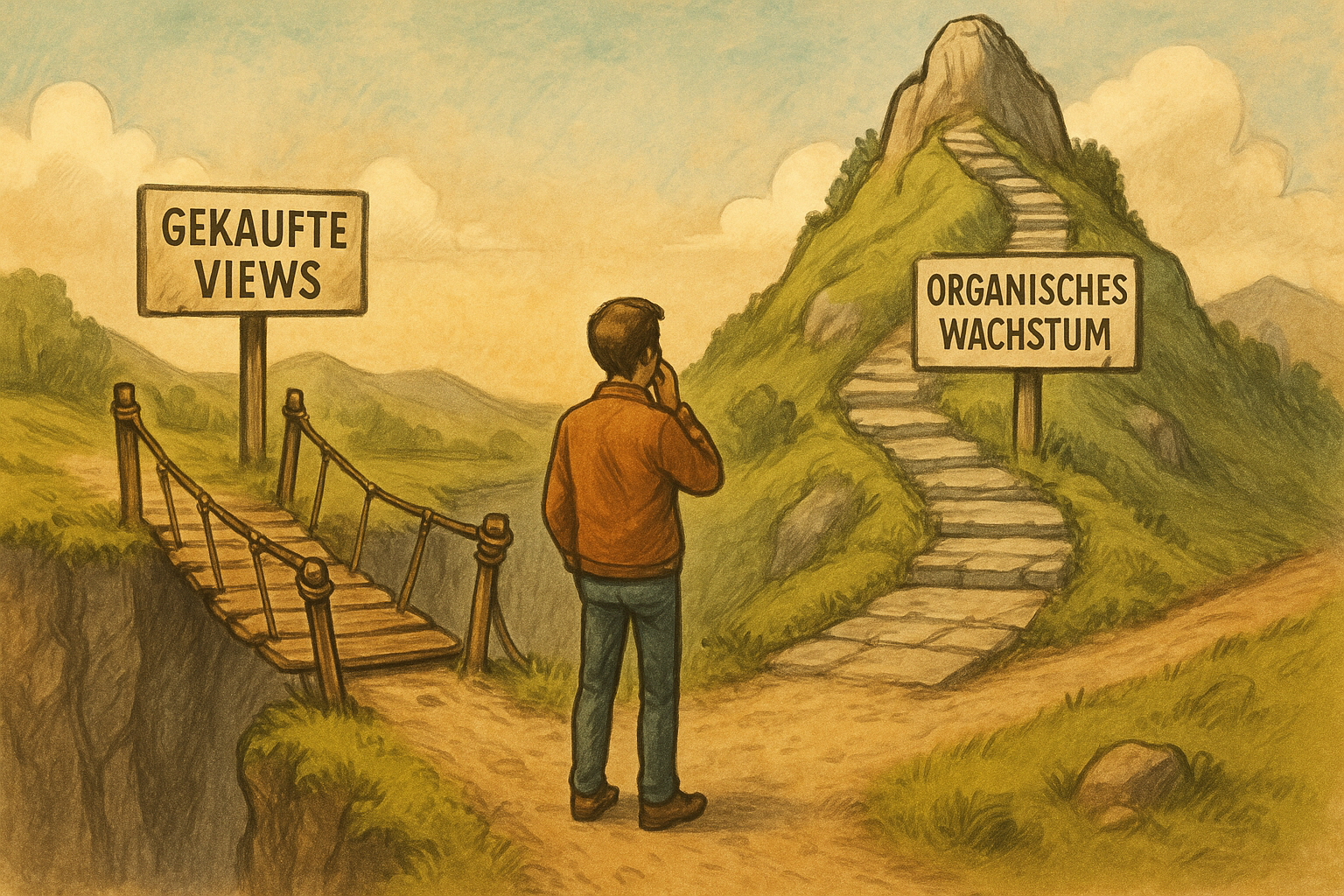 Weggabelung zwischen gefährlichen gekauften Views und nachhaltigem organischem Wachstum