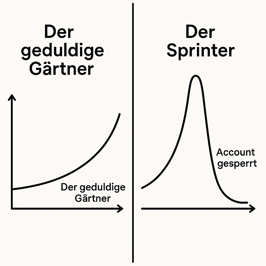 Vergleich zwischen geduldigem organischem Wachstum und dem Absturz durch gekaufte Views